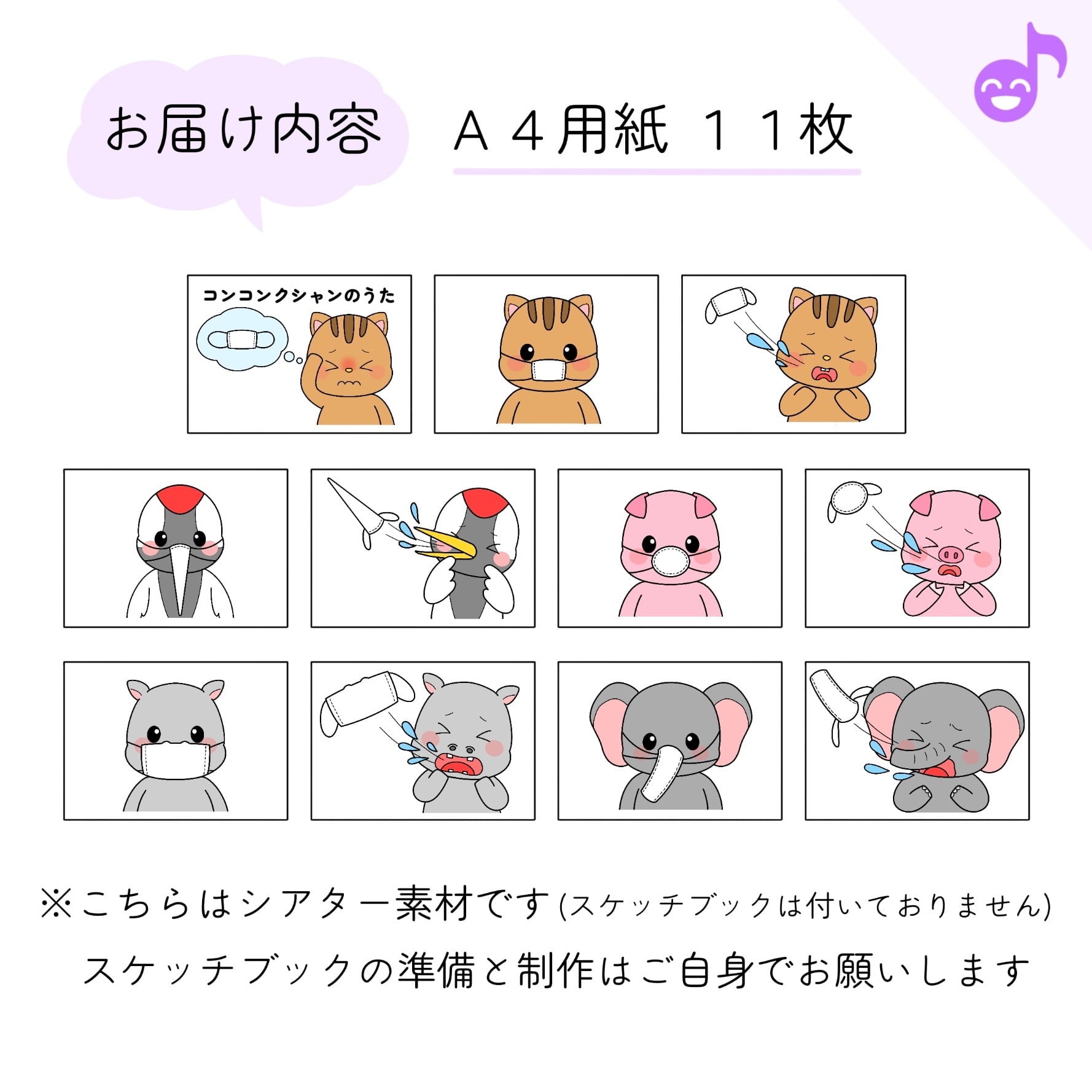 スケッチブックシアター素材「コンコンクシャンのうた」