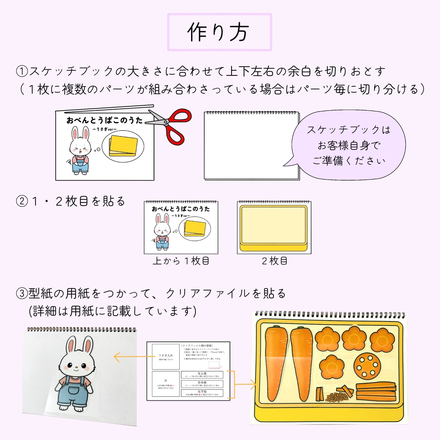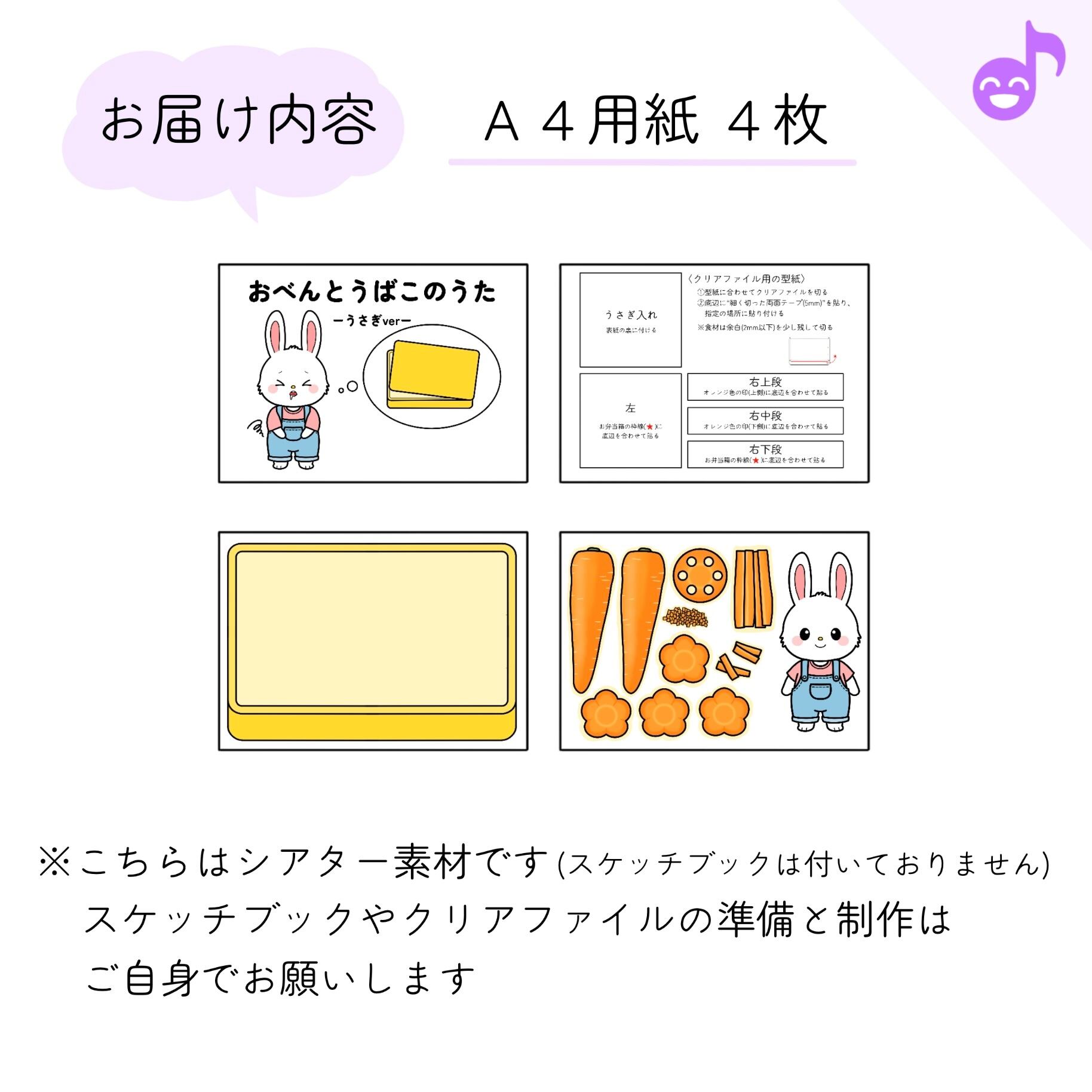 スケッチブックシアター素材「おべんとうばこのうたーうさぎverー」