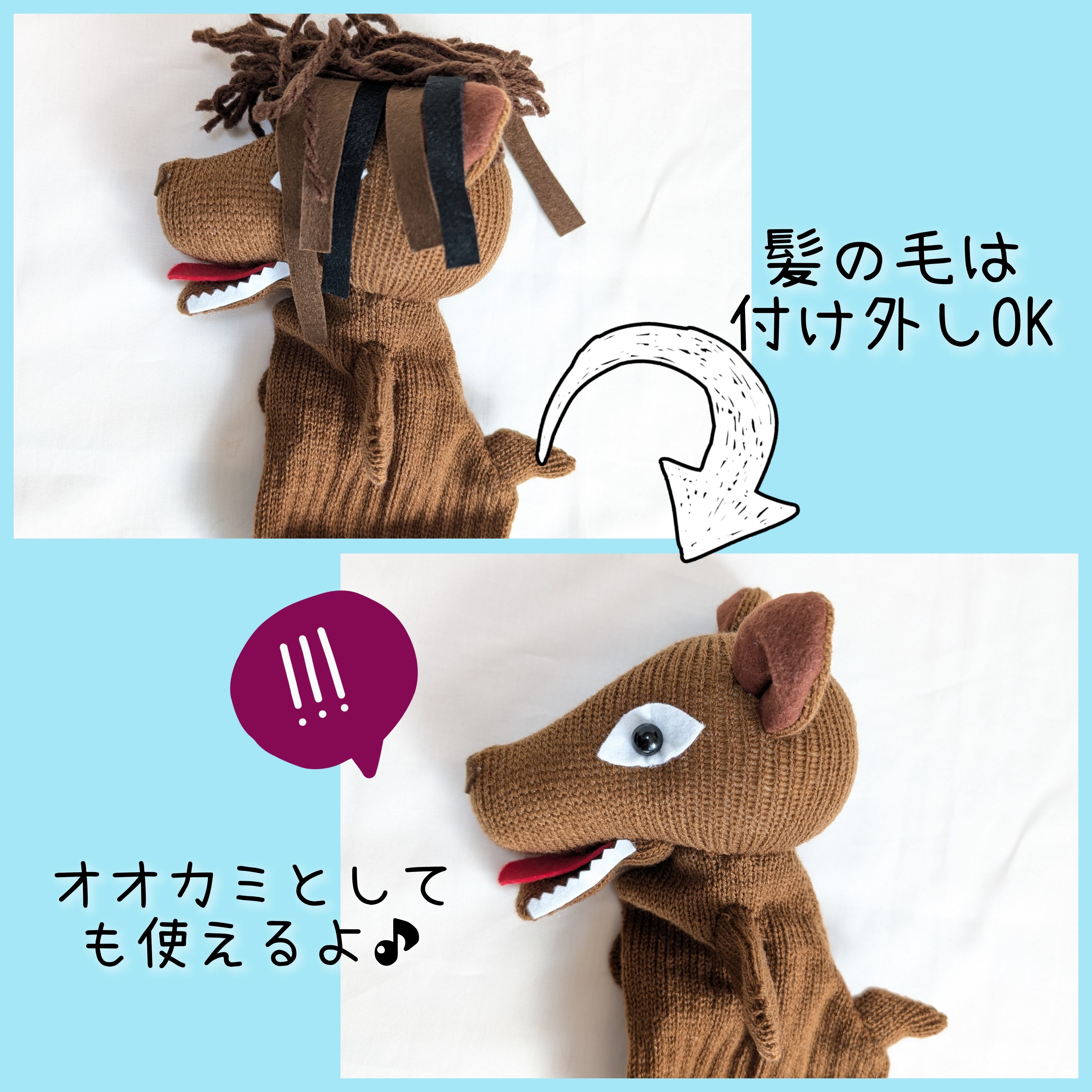 パペット人形になっているので、手にはめて演じてください(*^^*)