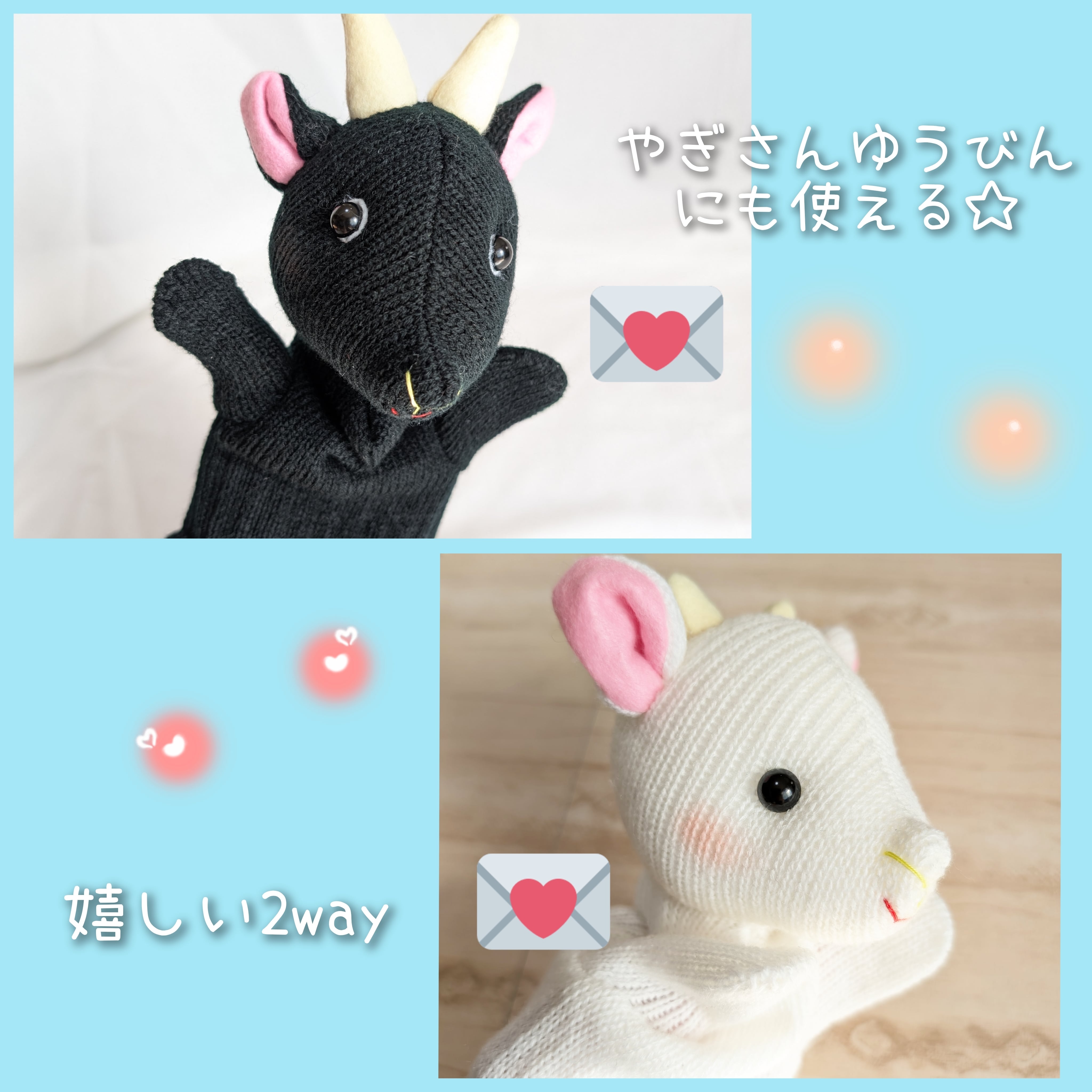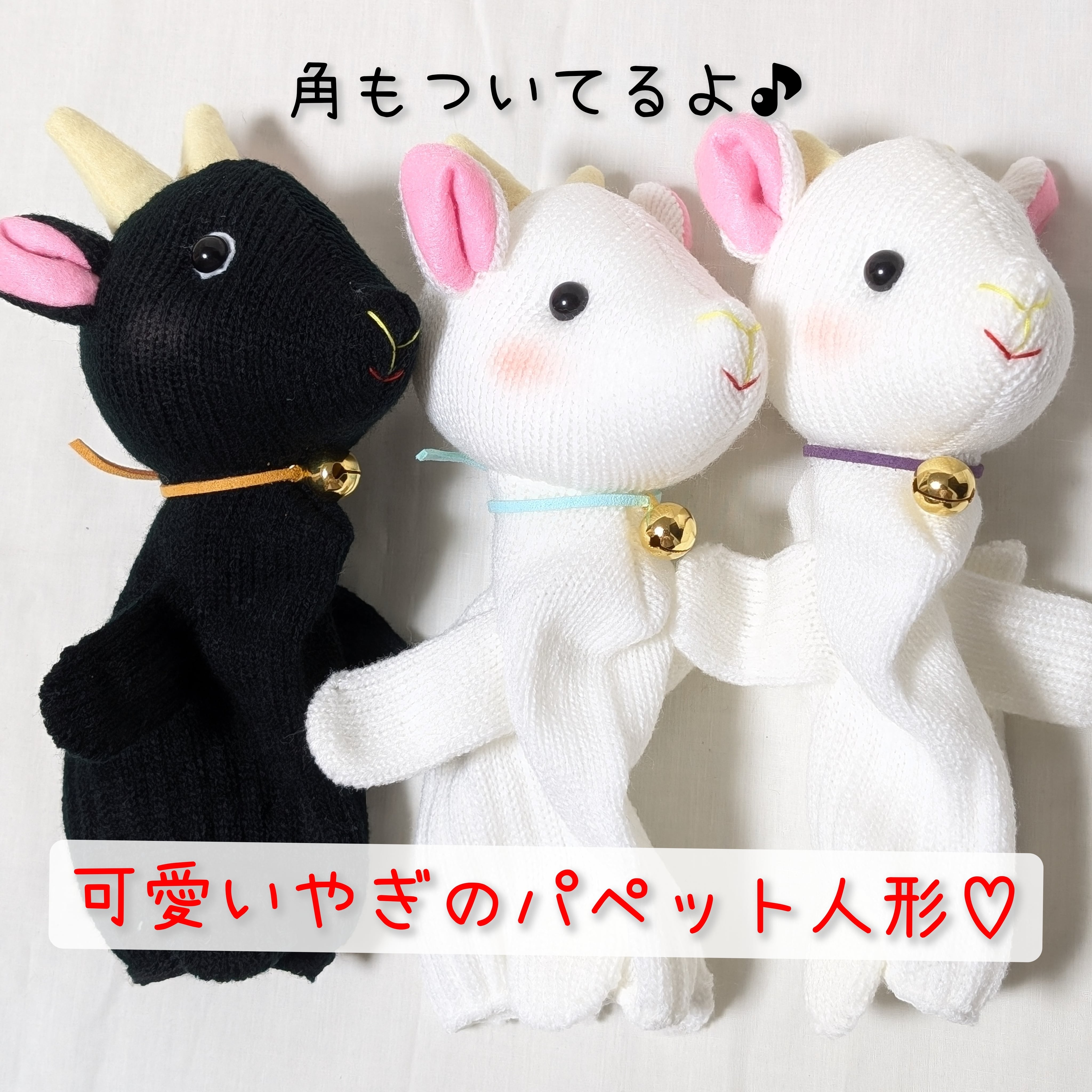 首元の鈴がかわいい-ヤギさんパペット?くろやぎさんもいるので、「ヤギさん郵便」のお歌にも使えちゃう2way仕様★